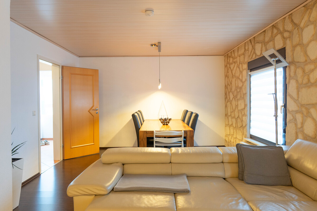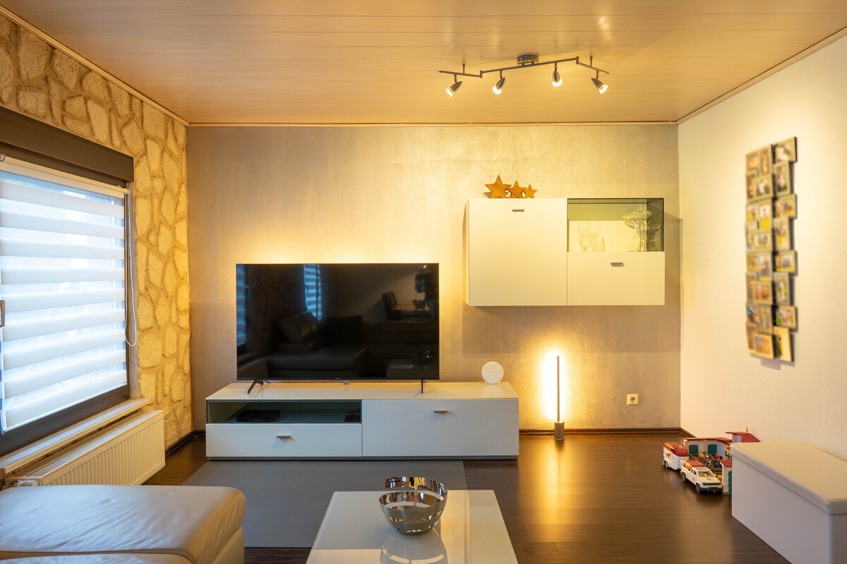 Diese attraktive Doppelhaushälfte befindet sich in ruhiger und familienfreundlicher Lage von Lambsheim und bietet mit ca. 130 m² Wohnfläche auf einem 517 m² großen Grundstück ein komfortables und durchdachtes Wohnkonzept. Die Immobilie überzeugt durch ihre schöne Raumaufteilung und den gepflegten Gesamtzustand. Herzstück des Hauses ist das großzügige Wohnzimmer mit integriertem Essbereich, das viel Platz für gemeinsame Stunden bietet. Die angrenzende Küche verfügt über einen direkten Zugang zur Terrasse und in den Garten.