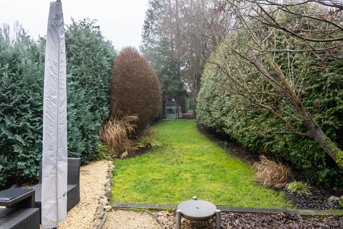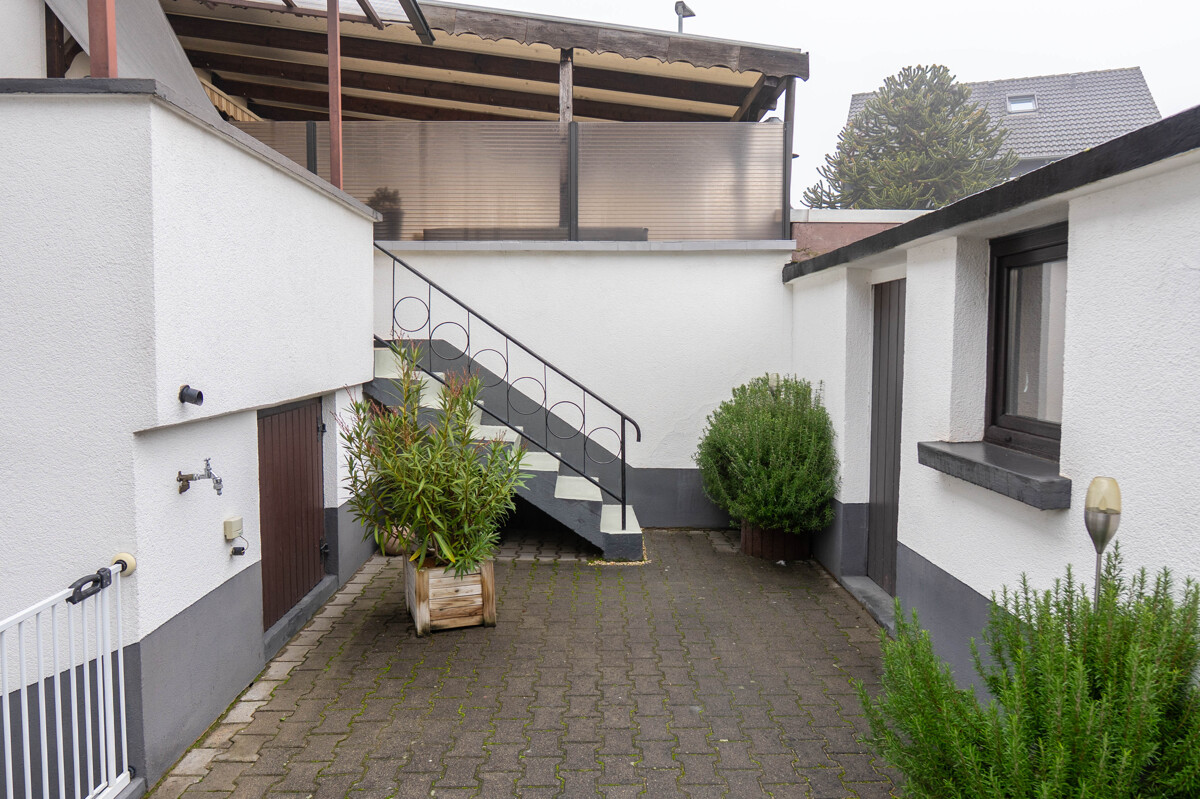Die große Hofeinfahrt bietet ausreichend Platz für Stellplätze. Der schön angelegte, schlauchartige Garten lädt mit einer gemütlichen Sitzecke zum Entspannen ein und bietet zugleich viel Platz zum Spielen für Kinder.