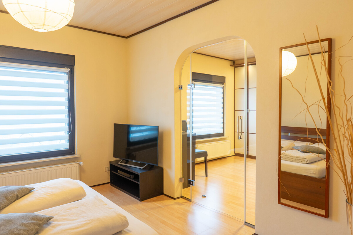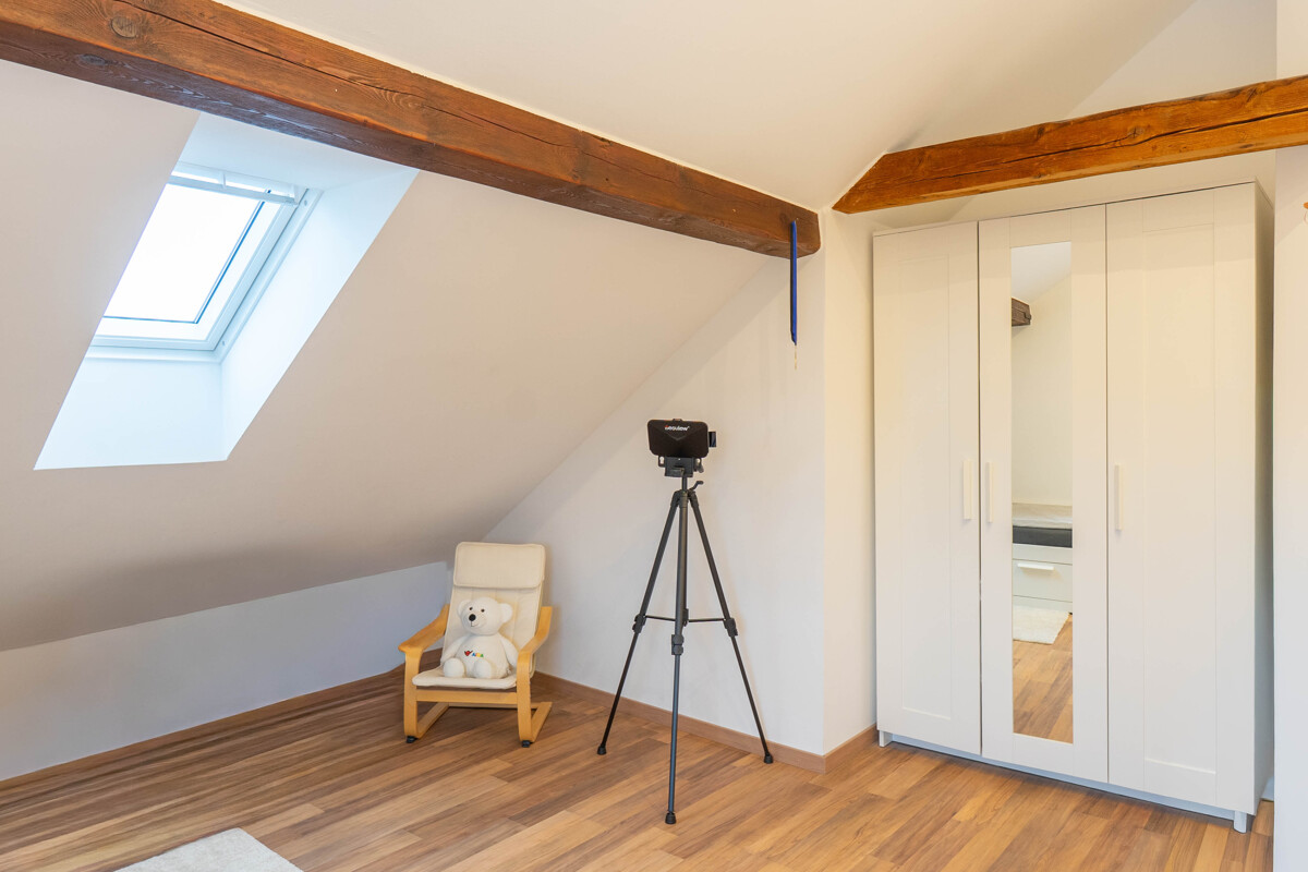 Das Schlafzimmer ist mit einem separaten Ankleidezimmer sowie einem zusätzlichen Büro ausgestattet und bietet dadurch hohen Wohnkomfort. Ein sehr großes Badezimmer mit Badewanne und begehbarer Dusche rundet das Raumangebot auf dieser Ebene ab. Im vollständig ausgebauten Dachgeschoss stehen zwei helle Kinderzimmer zur Verfügung und eignen sich ideal als Schlaf-, Spiel- oder Arbeitsräume.