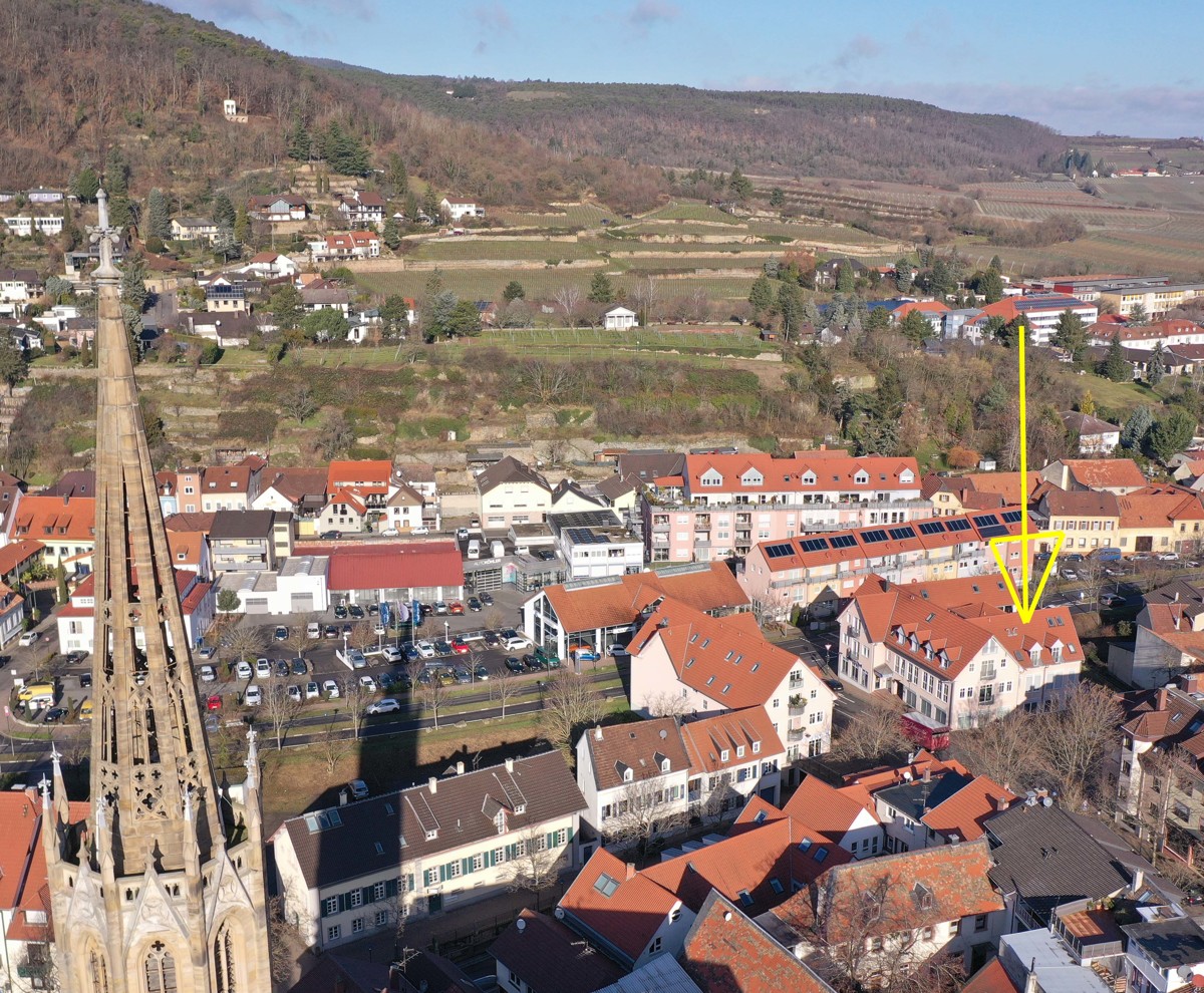 Bad Dürkheim-Zentrum: Eine Wohnung, die (beinahe) alle Wünsche erfüllt. Gelegen im 3. Obergeschoss eines 2001 erbauten Hauses. Auf dieser Ebene sind ein großes Wohn- Esszimmer, bis unter den First offen, so dass ein großzügiges Raumgefühl entsteht, Glasschiebetür zur großen Terrasse, helle Küche mit Einbauküche, Schlafzimmer (klimatisiert) mit franz. Balkon, Bad mit übergroßer Dusche, 2 weitere Zimmer und ein zusätzliches Bad mit Wanne. Die Ausstattung (türbreite, Dusche etc. ist bewusst altersgerecht ausgeführt). Über eine Innentreppe gelangen Sie in das Dachgeschoss mit einem klimatisierten Gäste oder Workout- Zimmer und einem weiteren Duschbad. Hier ist auch ein beheizter Speicherraum, welcher sich als Werkraum mit Tageslicht bestens nutzen lässt. Durch eine zentrale Wohnungsstaubsauganlage ist alles leicht sauber zu halten. Auf der Terrasse ist ein mit Glas eingehaust und teils auch beheizbar (Pflanzenlager im Winter). In diesem 3.Obergeschoß sind 4 Wohnungen zu denen man vom Fahrstuhl nur durch eine zusätzliche Eingangstür mit Klingel- und Öffnungsanlage gelangt. So kann sich kein ungewollter Gast an die Haustür schleichen. In der Tiefgarage gehören die 2 Stellplätze direkt neben dem Zugang zum Fahrstuhl zu dieser Wohnung. Der Kellerraum ist teils als klimatisiertes Weinlager ausgebaut. Die Ausstattung ist hochwertig, hier sprechen die Bilder für sich.