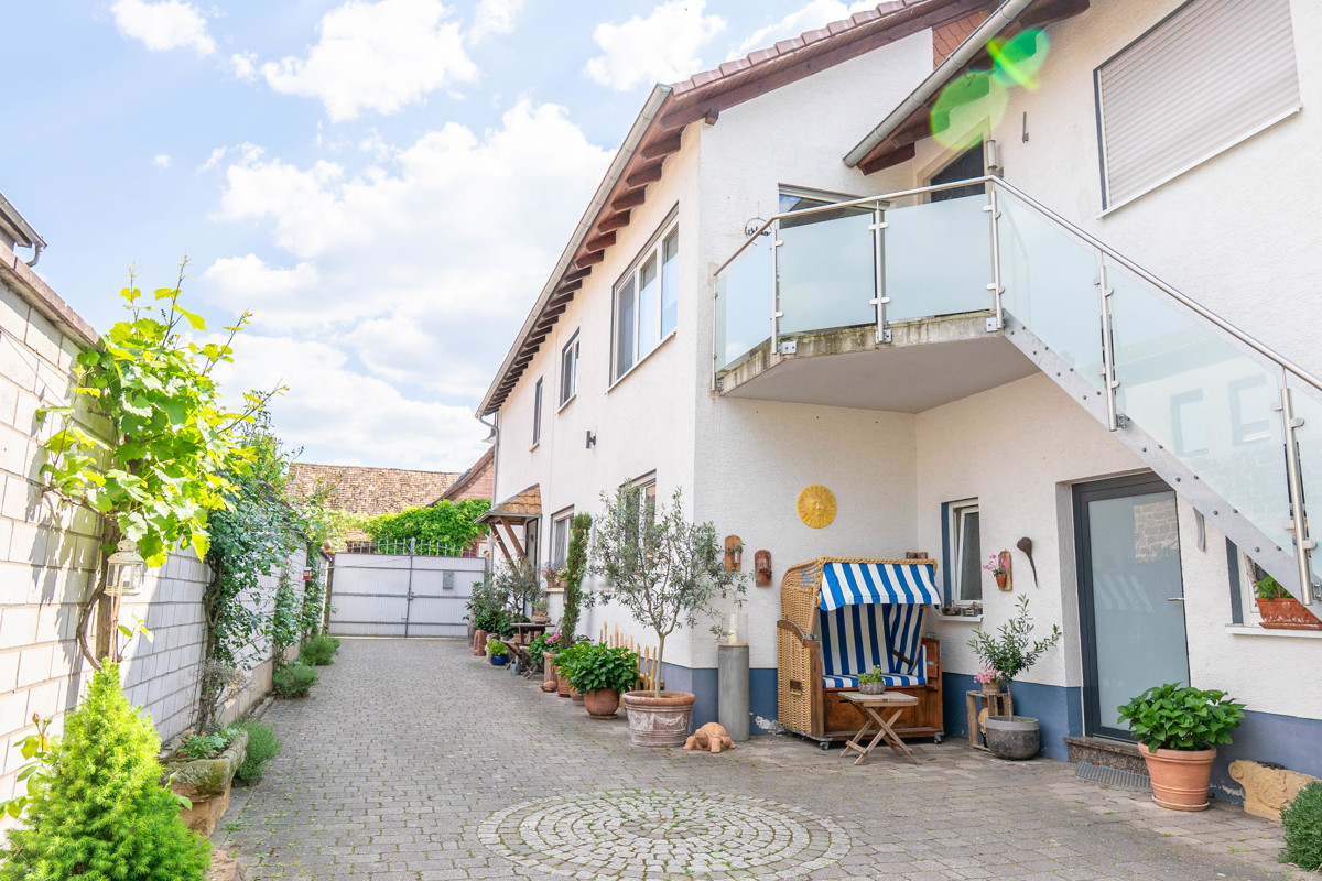Dieses gepflegte Anwesen in der charmanten Weinbaugemeinde Friedelsheim, nur wenige Minuten von der bekannten Kurstadt Bad Dürkheim entfernt, bietet ein ideales Zuhause für Familien, Paare oder auch Selbstständige mit Platzbedarf. Das ca. 690 m² große Grundstück beherbergt ein großzügiges 1-2-Familienhaus mit insgesamt ca. 209 m² Wohnfläche, die sich auf zwei separate Wohneinheiten verteilt: Die Erdgeschosswohnung umfasst ca. 92 m², die Obergeschosswohnung bietet ca. 117 m² – perfekt für Mehrgenerationenwohnen oder zur Vermietung.